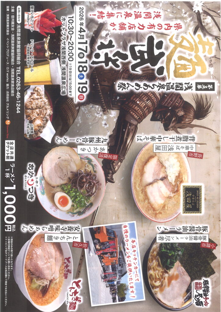 浅間温泉で「第四幕 浅間温泉らあめん祭り 麵武将」が開催